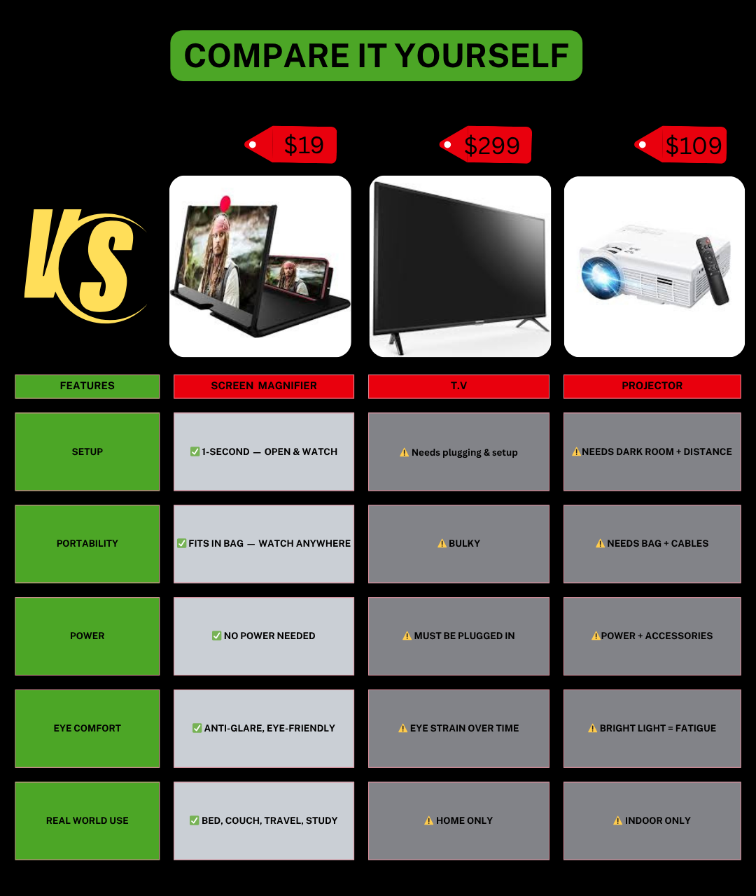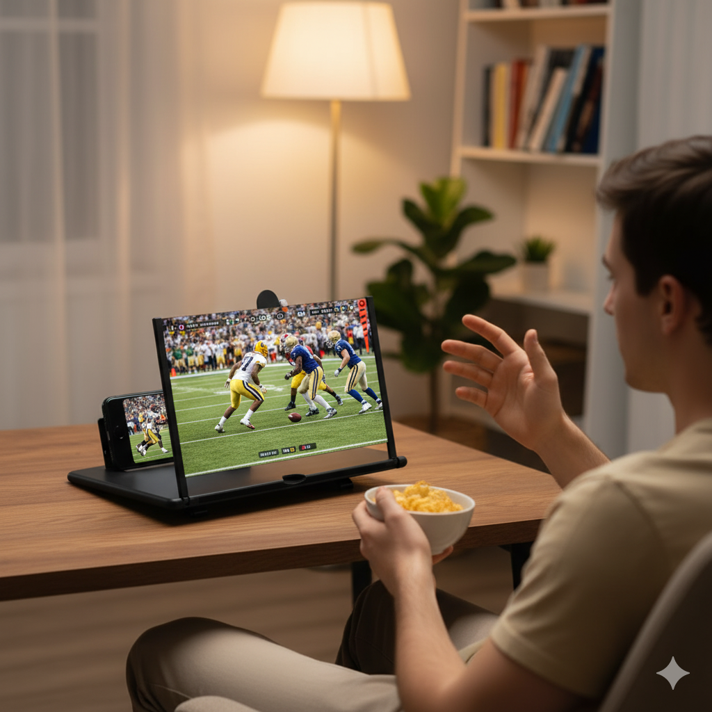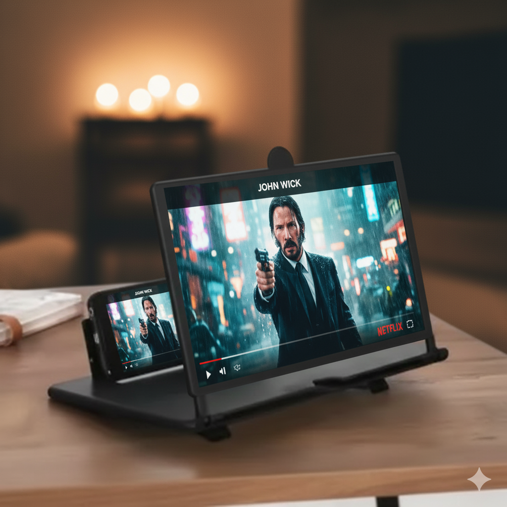 â Absolutely! The 12-inch screen magnifier enlarges your phone display with crystal-clear HD clarity, giving you a mini cinema experience anywhere.